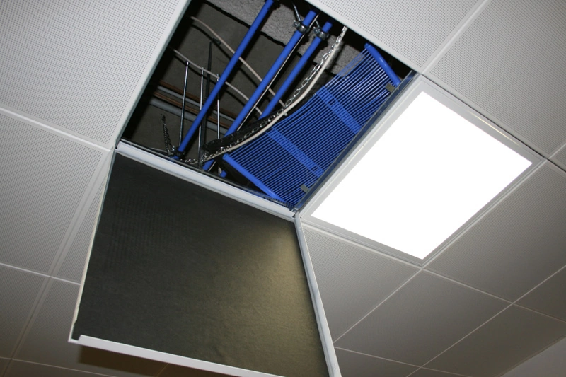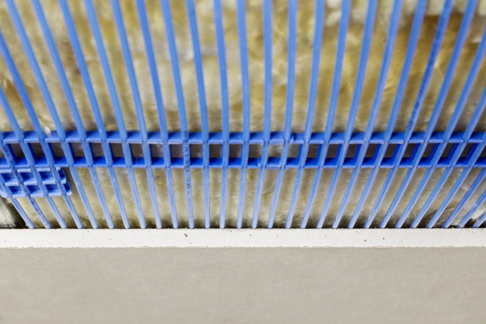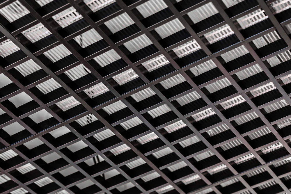 Kapiliariniai kilimėliai įtempiami virš atvirų lubų sistemų – ažūrinių grotelių, metalinių ar medinių tašelių.